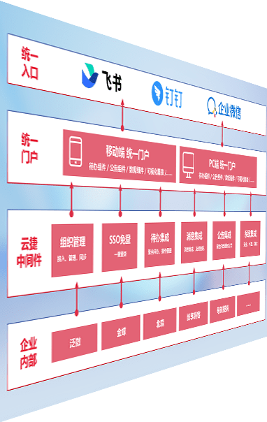 对协作平台提供支持服务,,支持企业应用与协作平台对接,,,,包含组织同步、、、、消息集成、、、、待办集成等。。支持目前主流的协作平台:钉钉、、、企微和飞书。。。。